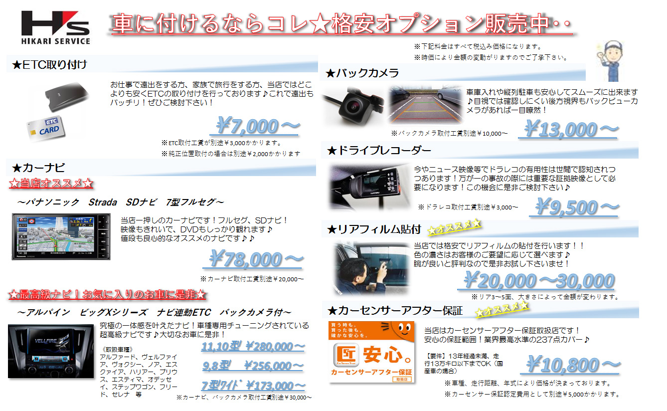 車に付けるならコレ★格安オプション販売中